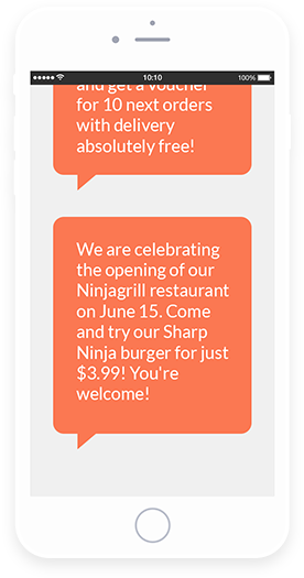 UpMenu te permite crear y enviar correos, mensajes de texto y notificaciones Push a tus usuarios de manera sencilla.