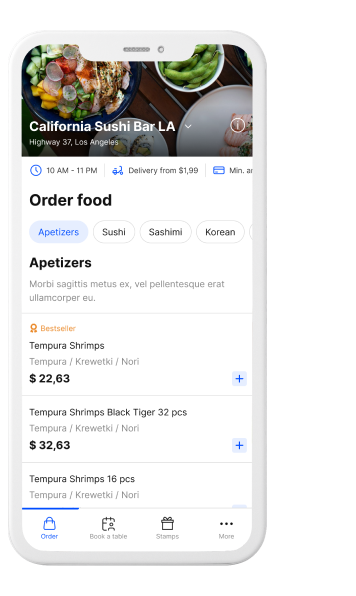 - Create a clear and concise digital menu with all your offerings and prices for easy user navigation.