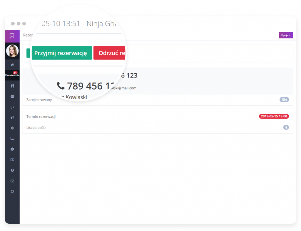 Każda restauracja otrzymuje dostęp do panelu z rezerwacjami. Przyjmujesz je jednym kliknięciem na dowolnym urządzeniu wyposażonym w przeglądarkę internetową (komputer, tablet lub telefon). Usprawniasz pracę personelu oraz nie masz problemu zablokowanej linii telefonicznej w godzinach szczytu.